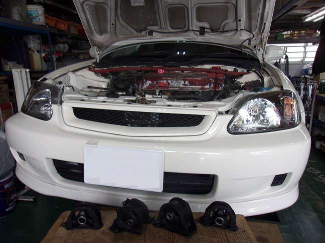 EK9シビックTyperRはエンジンマウント等の交換を実施いたしました。