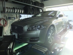 Tさんのジャガーは4輪アライメント調整を実施いたしました。