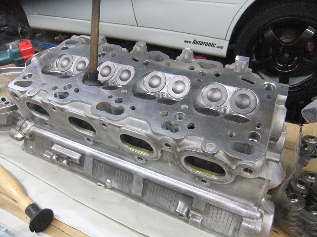エンジンオーバホール作業中のGさんのCT9AランサーエボリューションVIIは、1ヶ月以上かかってようやくヘッドのビッグバルブ加工から戻ってきましたので、バルブ擦り合わせに作業に着手いたしました。