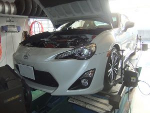 先日、車高調装着を実施したKさんのトヨタ86は本日、4輪アライメント調整を実施いたしました。