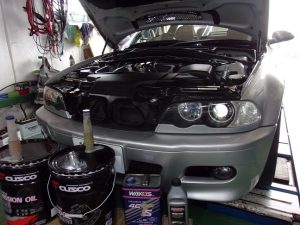 IさんのBMW M3はオイルメンテナンス作業になります。