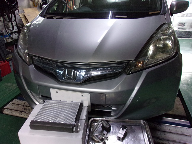 Nさんのフィットはエアコンリフレッシュ作業を開始いたします。
