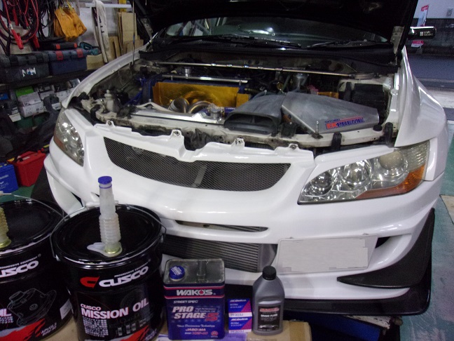 エンジンオイル&エレメント、ミッションオイル、LSDオイル、ブレーキフルード交換等を実施いたしました。