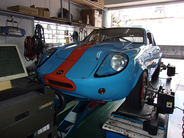 ミニ・マーコスGTは4輪アライメント調整を実施いたしました。