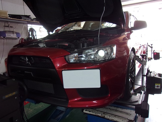 ランサー・エヴォリューションXは4輪アライメント調整を実施いたしました。